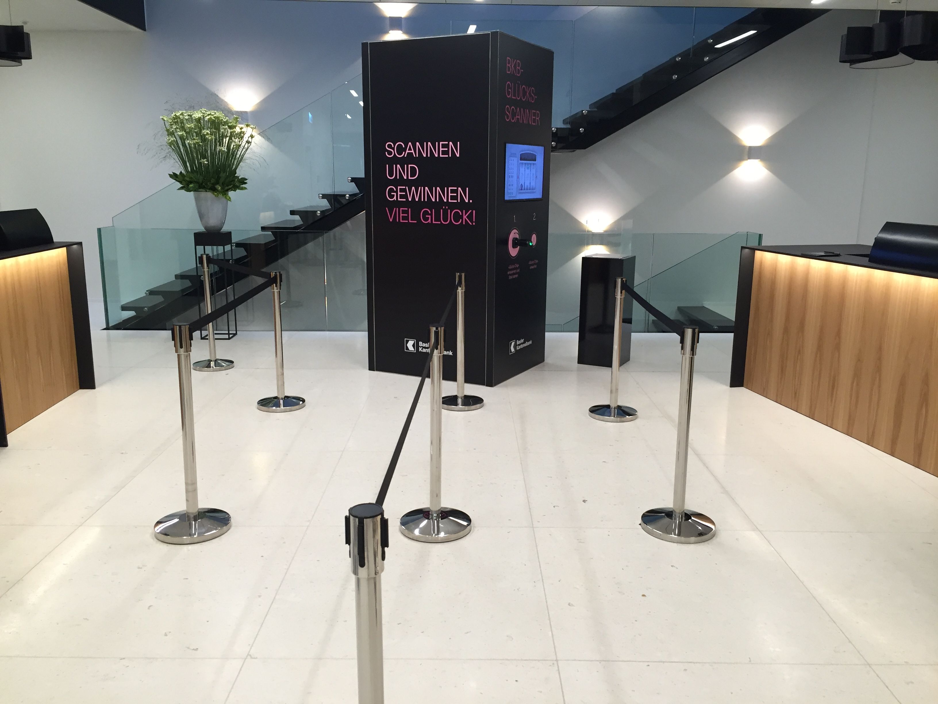 Die Basler Kantonalbank baute im Zuge einer Modernisierung ihre Filialen sukzessive um. Das neue Erlebnis in den Filialen wollte man natürlich baldmöglichst dem Kundenstamm, als auch den AnwohnerInnen des jeweiligen Quartiers zeigen. Im Zuge der Eröffnungsevents suchten die Verantwortlichen der Basler Kantonalbank nach einer Möglichkeit für eine digitale Besucheraktivierung, die gemeinsam mit einer persönlichen Einladung die Leute in die Filiale lockte.
